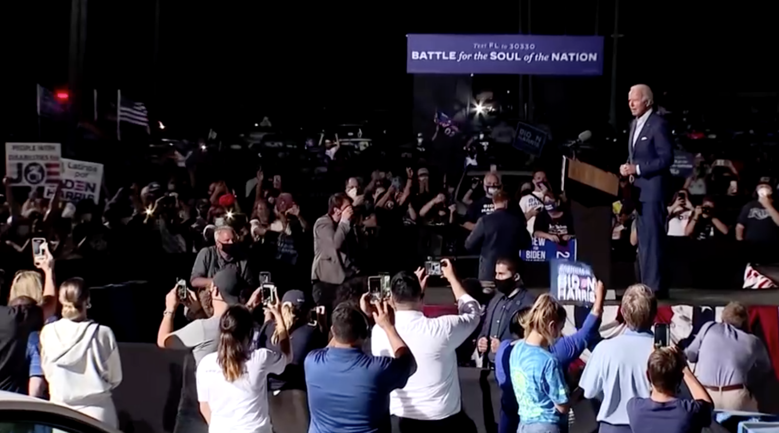 Tại Coconut Creek, Florida, ngay bên ngoài Fort Lauderdale, ông Biden đã tổ chức cuộc vận động tranh cử với các quy tắc nghiêm ngặt về khoảng cách xã hội, theo đó, cử tri phải ngồi trong xe hơi. Ông Biden đã chỉ trích Tổng thống Trump trong việc ứng phó với đại dịch Covid-19 và thất bại trong việc chống lại nạn kỳ thị chủng tộc.