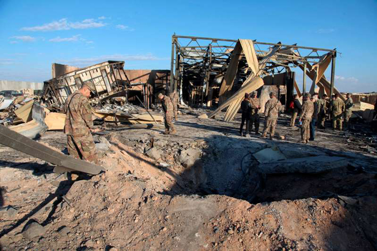 Binh sĩ Mỹ tại hiện trường vụ tấn công tên lửa vào căn cứ Ain al-Asad (Iraq) ngày 13/1. Ảnh: AP