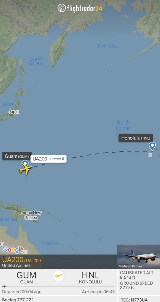 Chuyến bay từ đảo Guam đến Hawaii của United Airlines. Ảnh: Fligth Radar 24