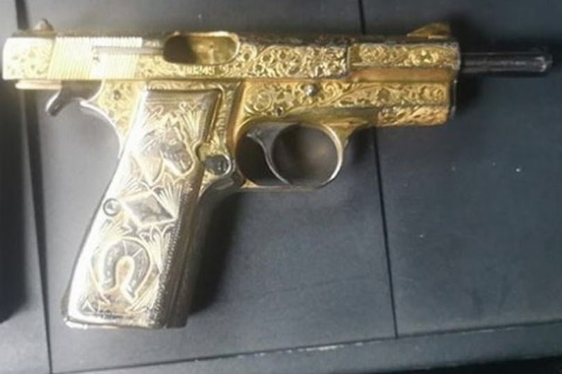 Khẩu súng thu giữ của thành viên băng đảng ma túy khiến người ta gợi nhớ đến khẩu súng vàng trong một bộ phim về điệp viên 007 - James Bond, theo Daily Star.