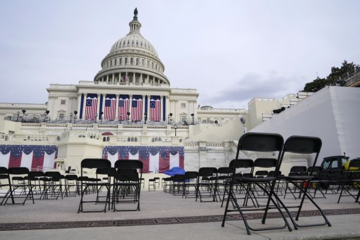 Toà nhà quốc hội Mỹ chuẩn bị cho lễ nhậm chức tổng thống. Ảnh: Yahoo News.