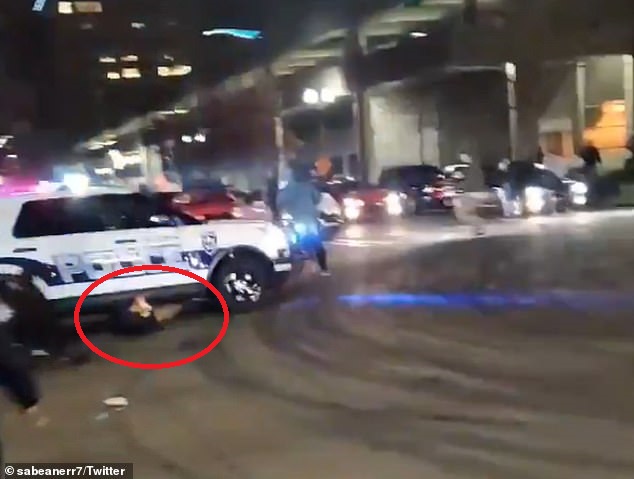 Người đàn ông bị chiếc xe SUV của cảnh sát chèn qua. Anhr: Twitter