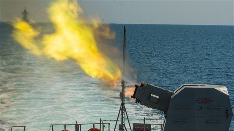 'Choáng váng' với màn khai hỏa siêu tốc độ của pháo Duet Nga. Mới đây hệ thống pháo bắn siêu nhanh AK-630M2 Duet trên chiến hạm Nga vừa có màn thể hiện sức mạnh cực ấn tượng.