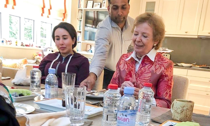 Công chúa Sheikha Latifa bint Mohammed Al Maktoum (trái) và cựu cao ủy nhân quyền LHQ Mary Robinson tại Dubai hồi tháng 12/2018. Ảnh: AP.