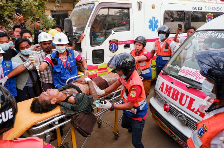 Một bác sĩ tham gia biểu tình ở tuyến đầu tại Mandalay, mô tả cảnh tượng hỗn loạn và đổ máu “như thời chiến”. Cô nói nhìn thấy cảnh sát phun vòi rồng vào người biểu tình, đánh đập, thậm chí bắn đạn thật.