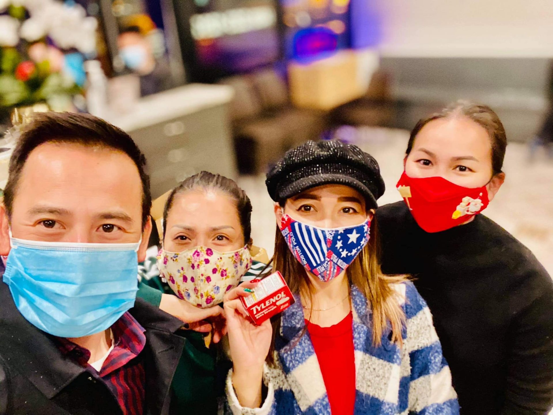 Trung Lâm (trái) và bạn hữu chuẩn bị chương tŕnh Covid Care Package. (H́nh: FB Ngoc Rachel Nguyen)