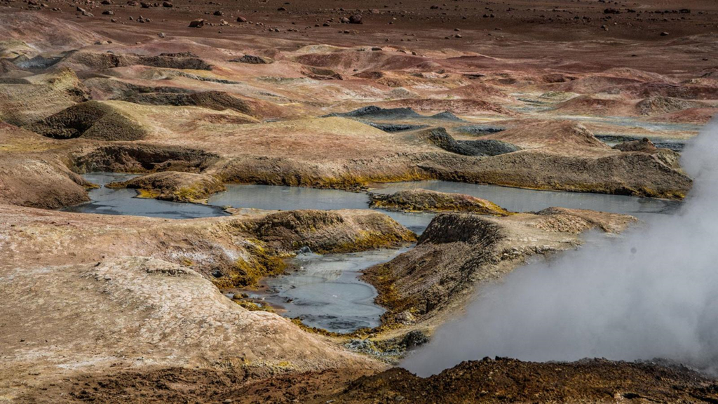 Theo các chuyên gia tại cơ quan Bảo vệ Khu vực Quốc gia của Bolivia (SERNAP), các yếu tố địa chất cần thiết để tạo nên Salar de Uyuni ảnh hưởng đến phần lớn vùng đất phía tây nam của quốc gia này. Cách cánh đồng muối chưa đầy 300 km về phía nam, khu bảo tồn động vật quốc giaEduardo Avaroa sở hữu những vùng địa nhiệt đầy màu sắc như lưu vực Sol de Manana (hay còn gọi là Mặt trời Buổi sáng). Ảnh: Juan Martinez.
