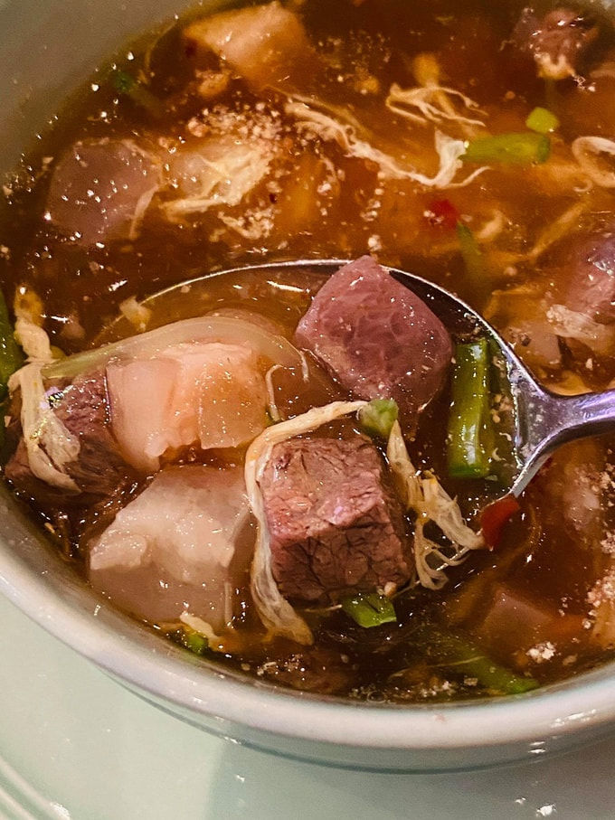 Tôm càng và sườn heo được nấu cùng những thứ gia vị đắt đỏ. Ảnh: iONE