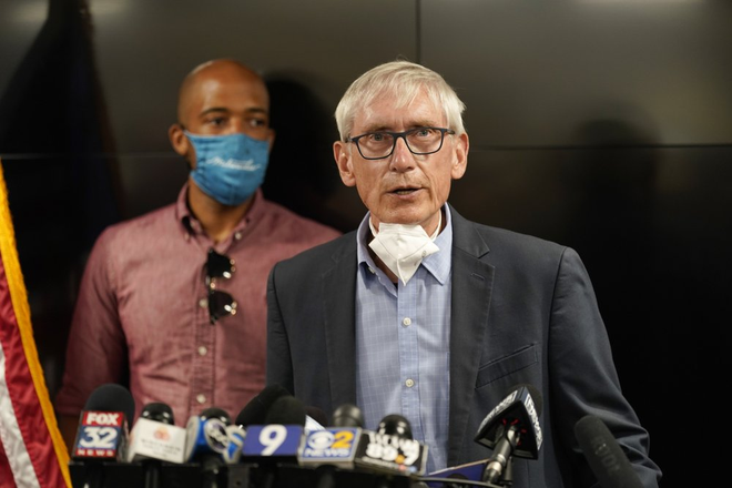 Thống đốc bang Wisconsin Tony Evers trong một cuộc họp báo hồi tháng 8/2020. Ảnh: AP.