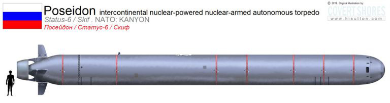 Sự tồn tại của ngư lôi Poseidon 2M39, ban đầu có tên là Status-6, vào năm 2015, và dự kiến lúc đầu mang một đầu đạn nhiệt hạch tận 100 megaton có thể gây ra sóng thần phóng xạ thay v́ 2 megaton như hiện tại.