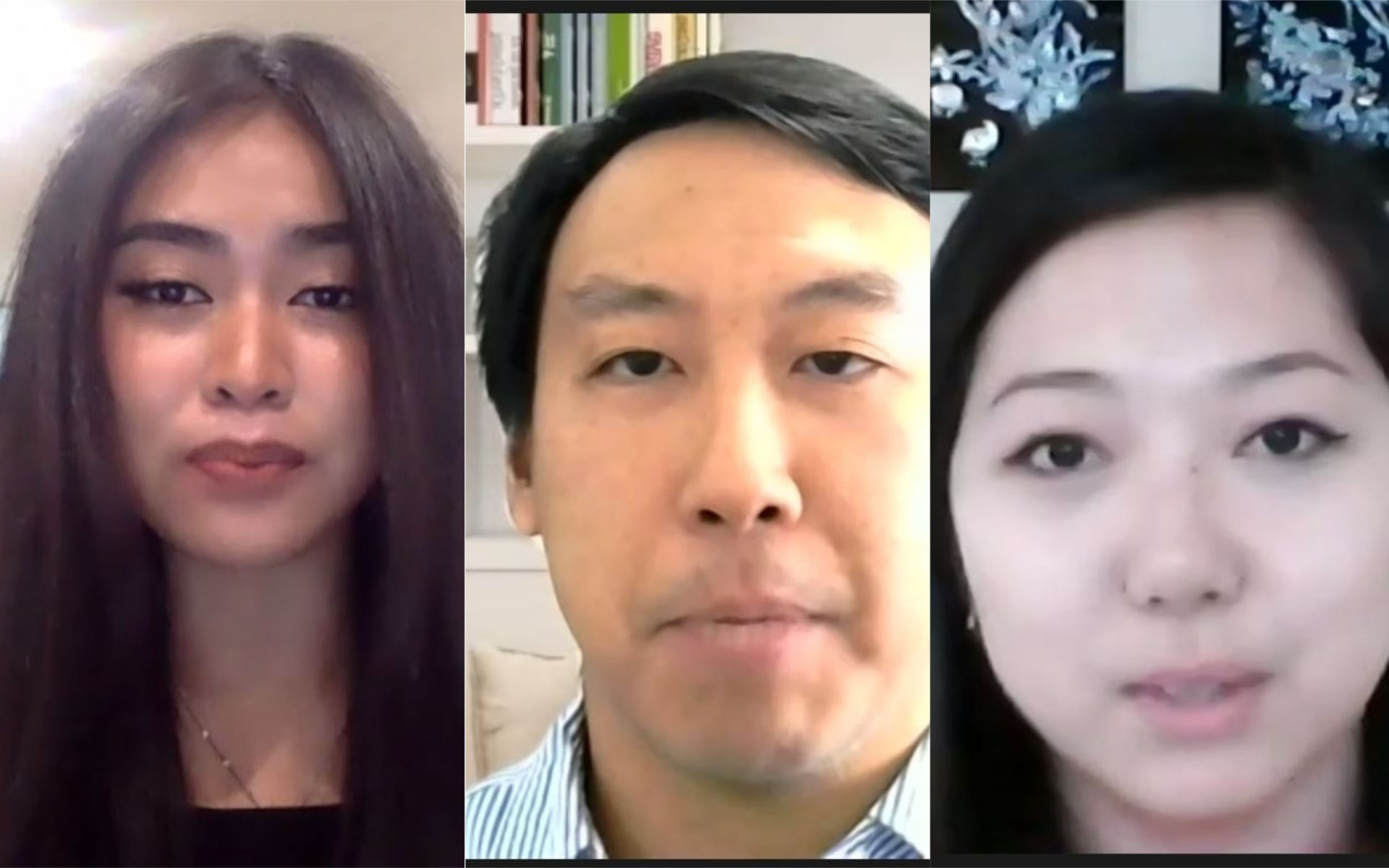 Từ trái, cô Cookie Dương, anh Long Nguyễn, và cô Crysta Trần. (Hình: Chụp từ màn hình Zoom)
