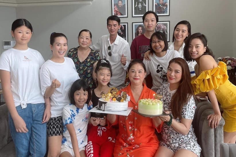 Bà Minh Phương (áo đỏ) - mẹ của Trương Ngọc Ánh (phải, ngồi) hạnh phúc đón tuổi mới bên gia đình và vài người thân.