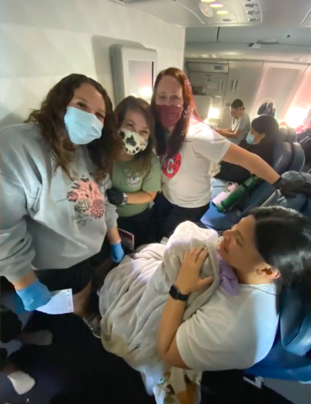 Ba y tá hỗ trợ Lavinia sinh con trên máy bay. Ảnh: Fox 4