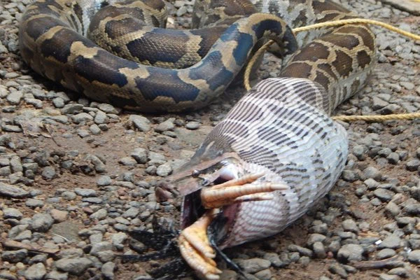 Hôm 3/5, ban đầu, chủ trang trại phát hiện con trăn nằm bất động trên một tảng đá gần bình trữ nước. Vừa hoảng sợ và sợ hãi, người chủ trang trại lập tức gọi điện cho lực lượng cứu hỏa ở địa phương để nhờ tới bắt con trăn.