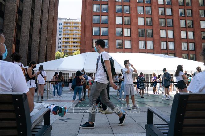 Sinh viên xếp hàng chờ xét nghiệm COVID-19 tại trường đại học New York, Mỹ. Ảnh: AFP/TTXVN