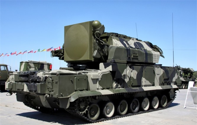 Hệ thống pḥng không Tor-M1 của Nga được đặt trên khung gầm xe bánh xích (Ảnh: toutiao).