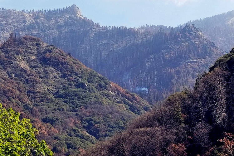 Khói bốc lên từ cây Sequoia nh́n từ xa. Ảnh: Cục Công viên Quốc gia Mỹ