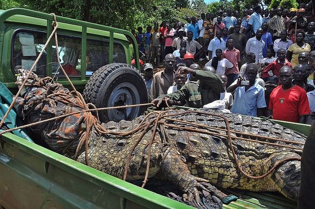 Cá sấu khổng lồ dài 5m từng ăn thịt 80 dân làng, bị 50 người vây bắt. Con cá sâu này từng là cơn ác mộng đối với các dân làng sống ở Luganga, vùng bờ hồ Victoria thuộc Uganda.