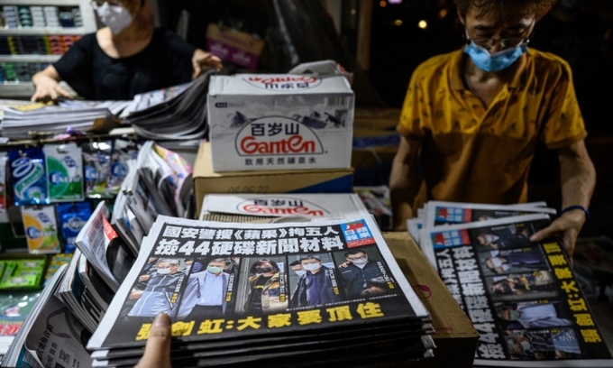 Tờ Apple Daily hôm nay phát hành 500.000 ấn phẩm, tăng nhiều lần so với 80.000 bản một ngày trước đó. Ngay vào giờ đi làm buổi sáng, một số sạp báo ở trung tâm Hong Kong cũng phát thông báo toàn bộ ấn phẩm của Apple Daily đă hết sạch.
