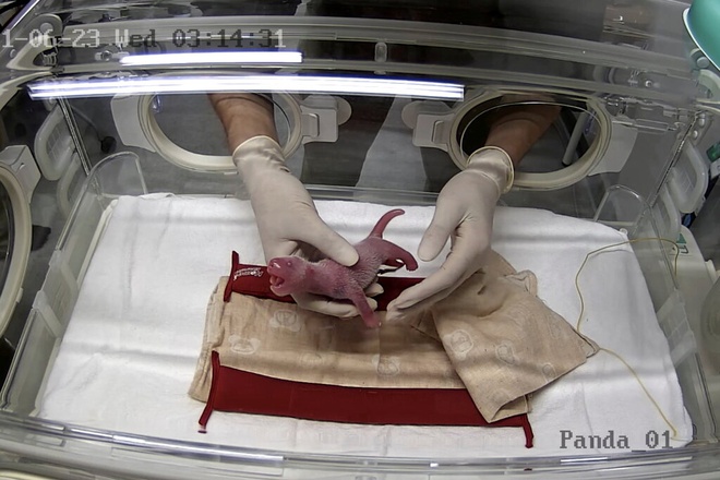 Giới tính hai con gấu trúc con chưa được công bố. Một trong hai con nặng 124 gram. Trọng lượng con gấu trúc con còn lại chưa được tiết lộ.