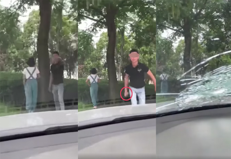Cú ném mạnh đầy sự tức giận khiến kính xe nứt nẻ, hư hỏng. Hiện chưa biết thiệt hại sau pha phá đám đôi uyên ương là bao nhiêu nhưng hành động của tài xế bị nhiều người lên án là vô duyên, bất lịch sự.