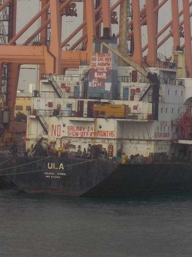 Khi chờ tại cảng, chủ tàu Ula là công ty Aswan ở Qatar cho biết không c̣n tiền để hỗ trợ con tàu. Sau đó, công ty này ngừng trả lương cho các thuyền viên và cắt đứt liên lạc.
