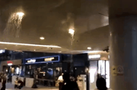 Đoạn video do nhân chứng ghi lại cho thấy, một phần trần của trung tâm thương mại bất ngờ sập xuống do sức nặng của nước mưa tràn vào, khiến nước ồ ạt trút xuống. Khách mua sắm hoảng sợ bỏ chạy tán loạn, nhưng may mắn không có ai bị thương.