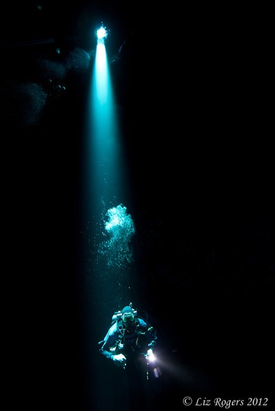 Một số khu vực trong "hố không đáy" tối om vì ánh sáng tự nhiên không thể chiếu tới. Ảnh: Liz Rogers