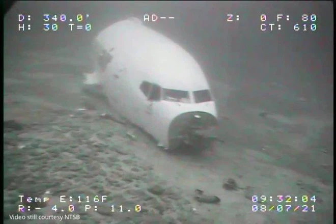 Ngay sau khi cất cánh từ sân bay quốc tế Daniel K Inouye ở Honolulu với điểm đến dự kiến là sân bay Kahului trên đảo Maui đều thuộc Hawaii, phi công đã gửi tín hiệu khẩn cấp tới trung tâm kiểm soát không lưu về chuyến bay mang số hiệu 810 của hãng Transair gặp nạn hôm 2/7 vừa qua, vì vậy ủy ban An toàn Giao thông Quốc gia Mỹ (NTSB) vừa cho công bố những hình ảnh ban đầu về xác chiếc máy bay Boeing 737 nằm dưới độ sâu 130 m trên vùng biển ngoài khơi đảo Honolulu, Hawaii.