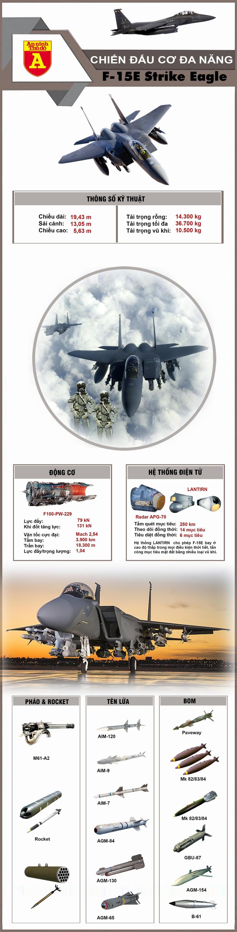 F-15E ra đời vào năm 1986 có sức mạnh vượt trội về năng lực chiến đấu lẫn khả năng bán tàng hình. Với sức mạnh hệ thống điện tử vượt trội, tốc độ cao lên tới Mach 2,5, cùng tải trọng vũ khí lớn lên tới 10,5 tấn, F-15E được đánh giá là một trong số những chiến đấu cơ tốt nhất hiện nay.