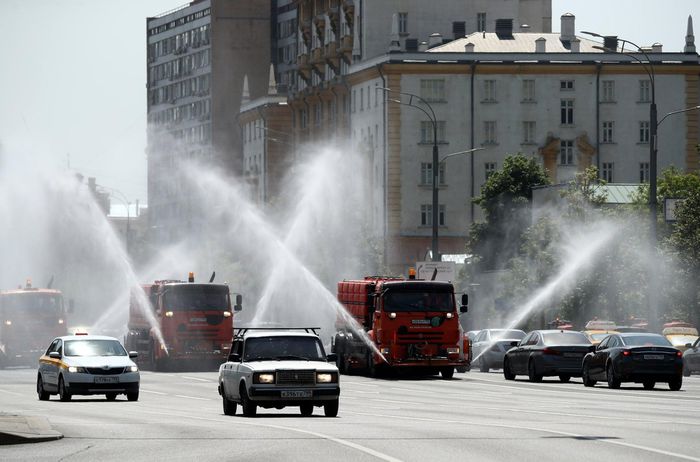 Xe phun nước trên đường Sadovoye Koltso, tại Moscow, Nga. (Ảnh: TASS)