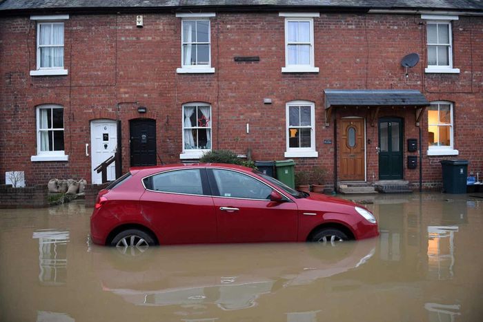Bão Christoph kéo theo mưa lớn trên khắp "Quốc đảo sương mù". Nước lũ tràn vào ô-tô đỗ bên ngoài ngôi nhà tại phía tây vùng England. (Ảnh: Getty Images)
