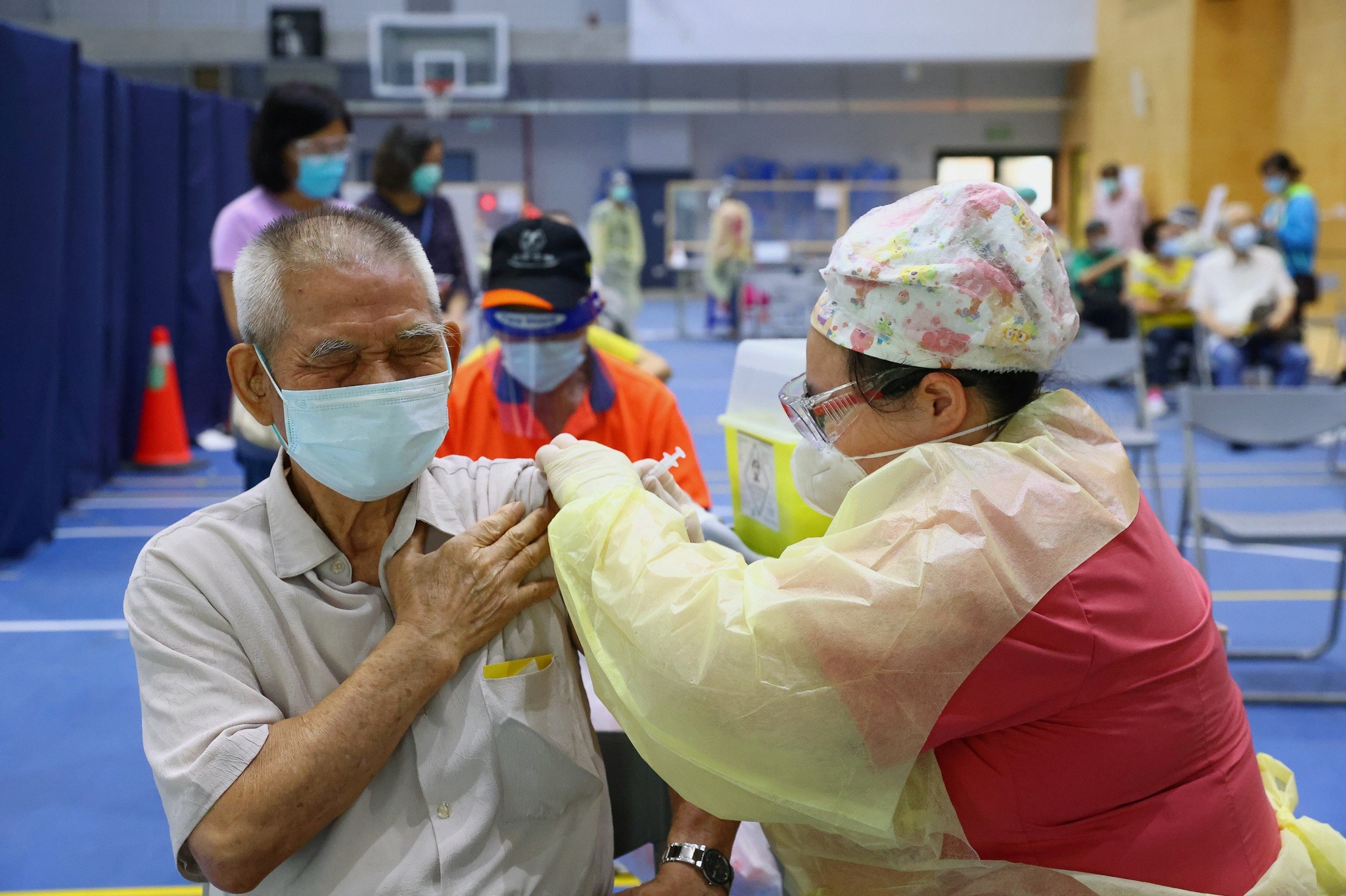 Nhân viên y tế tiêm vắc xin Covid-19 của AstraZeneca cho một người đàn ông tại thành phố Tân Bắc, Đài Loan ngày 25.6.2021