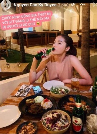 Mới đây trên story cá nhân, Hoa hậu Kỳ Duyên bất ngờ đăng đàn v́ bỗng dưng trở thành nhân vật trong câu chuyện từ trên trời rơi xuống. Cụ thể trang tin này viết: "Em vừa bị người yêu bỏ các chị ạ, mà lư do là v́ em uống bia giỏi, uống măi không say, không đỏ mặt, mặc dù lũ bạn đă say mềm. Người yêu em lần nào nhậu cùng cũng say trước. Em toàn bị đưa về. Hôm nay, anh ấy nói chia tay em, anh ấy nói em con gái mà không giữ ḿnh, không đoan trang hiền thục, con gái mà uống bia như nước lọc, uống vậy là hư người, là không tốt".