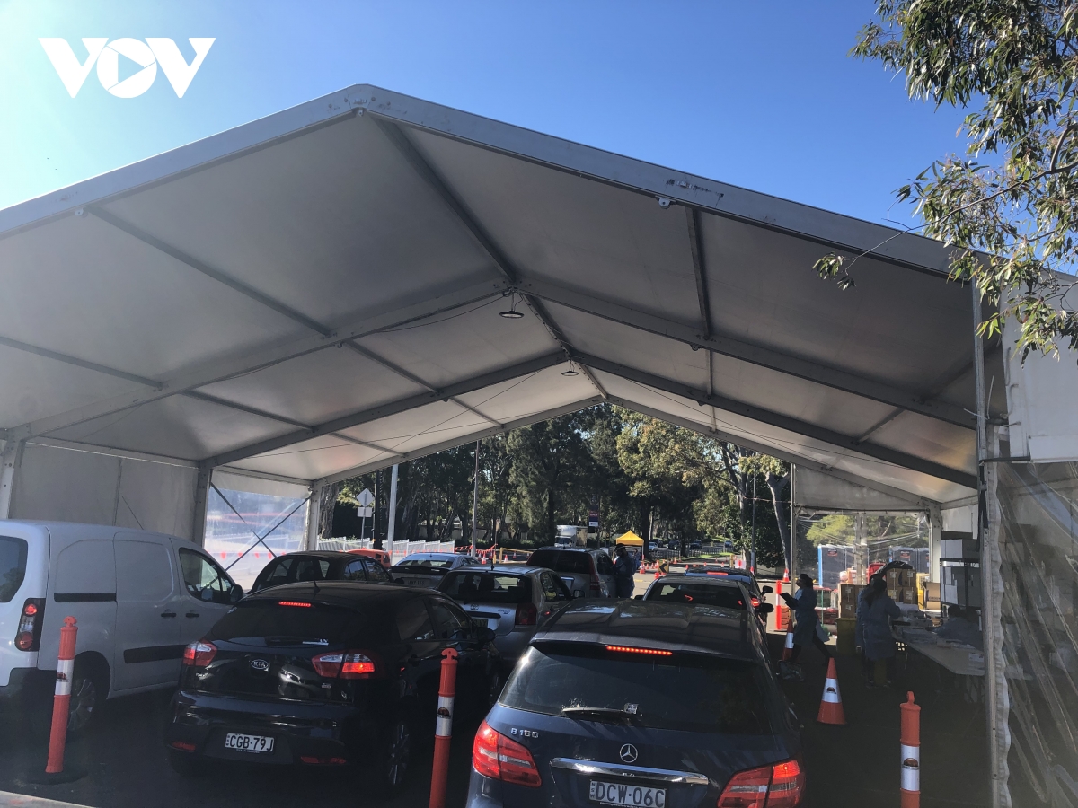 Các ô tô xếp hàng tại một địa điểm xét nghiệm Covid-19 tại thành phố Sydney.