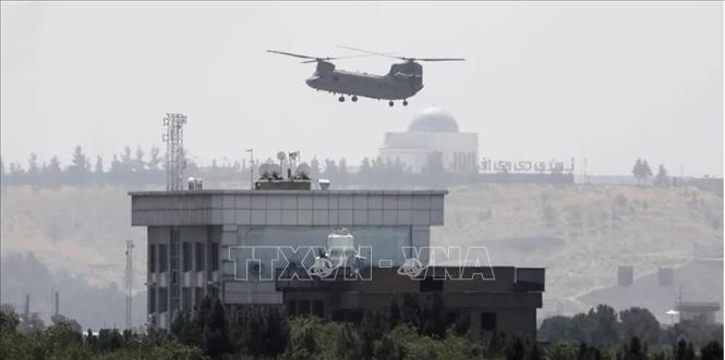 Máy bay trực thăng Chinook phía trên Đại sứ quán Mỹ ở Kabul, Afghanistan ngày 15/8/2021. Ảnh: AP/TTXVN