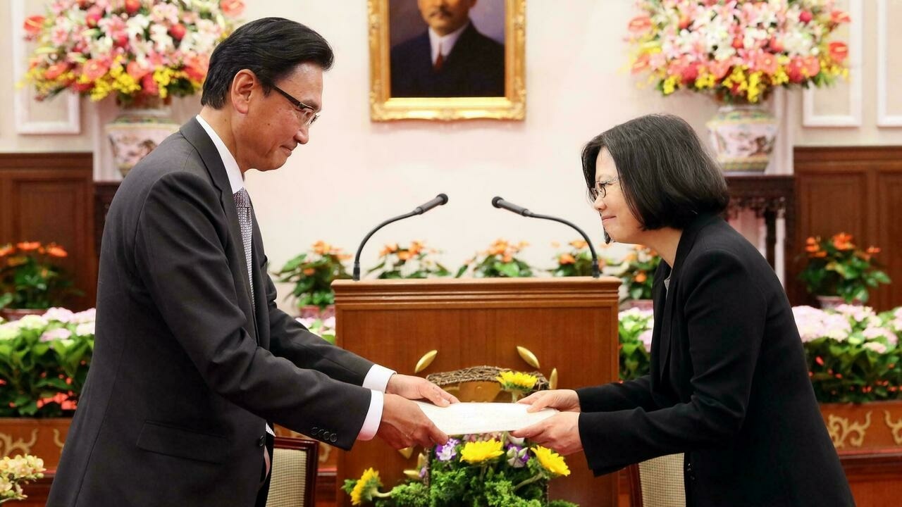 Ảnh tư liệu: Tổng thống Đài Loan Thái Anh Văn (t) tiếp dân biểu Nhật Bản Keiji Furuya ngày 20/05/2016. Quan hệ không chính thức giữa các chính khách Nhật Bản và Đài Loan đă có từ lâu, dù hai bên không có quan hệ ngoại giao. © Wikipedia