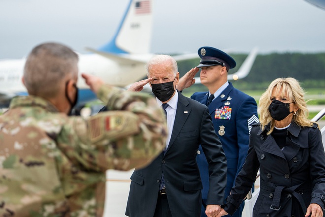 Hôm nay 29/8, Tổng thống Mỹ Joe Biden và phu nhân đến căn cứ không quân Dover để dự lễ hồi hương thi thể của 13 binh sĩ thiệt mạng sau vụ khủng bố ở sân bay tại Kabul, Afghanistan.