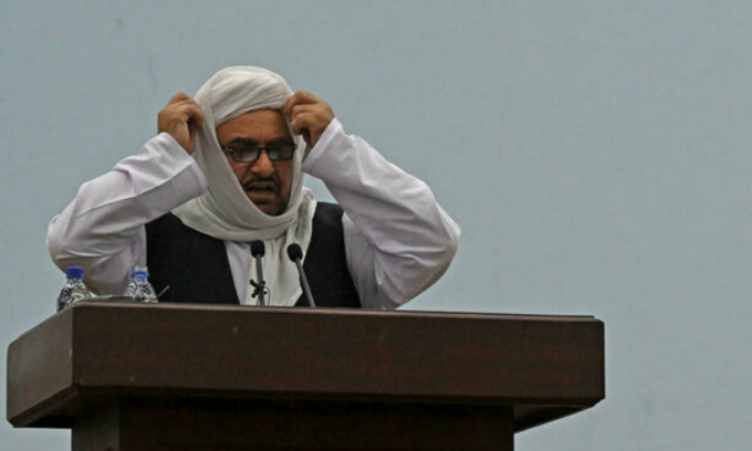 Quyền Bộ trưởng Giáo dục bậc cao của Taliban Abdul Baqi Haqqani trong cuộc họp ở Kabul hôm 29/8. Ảnh: AFP.