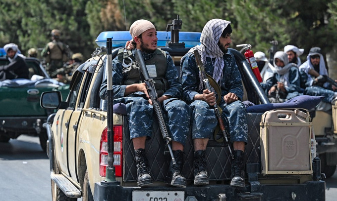 Các chiến binh Taliban tuần tra trên đường phố. Ảnh AP.