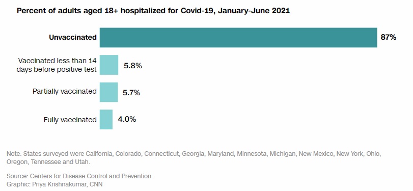 Tỉ lệ người chưa tiêm vaccine phải nhập viện v́ Covid-19 chiếm 87% số ca, tính từ tháng 1 đến tháng 6.2021.