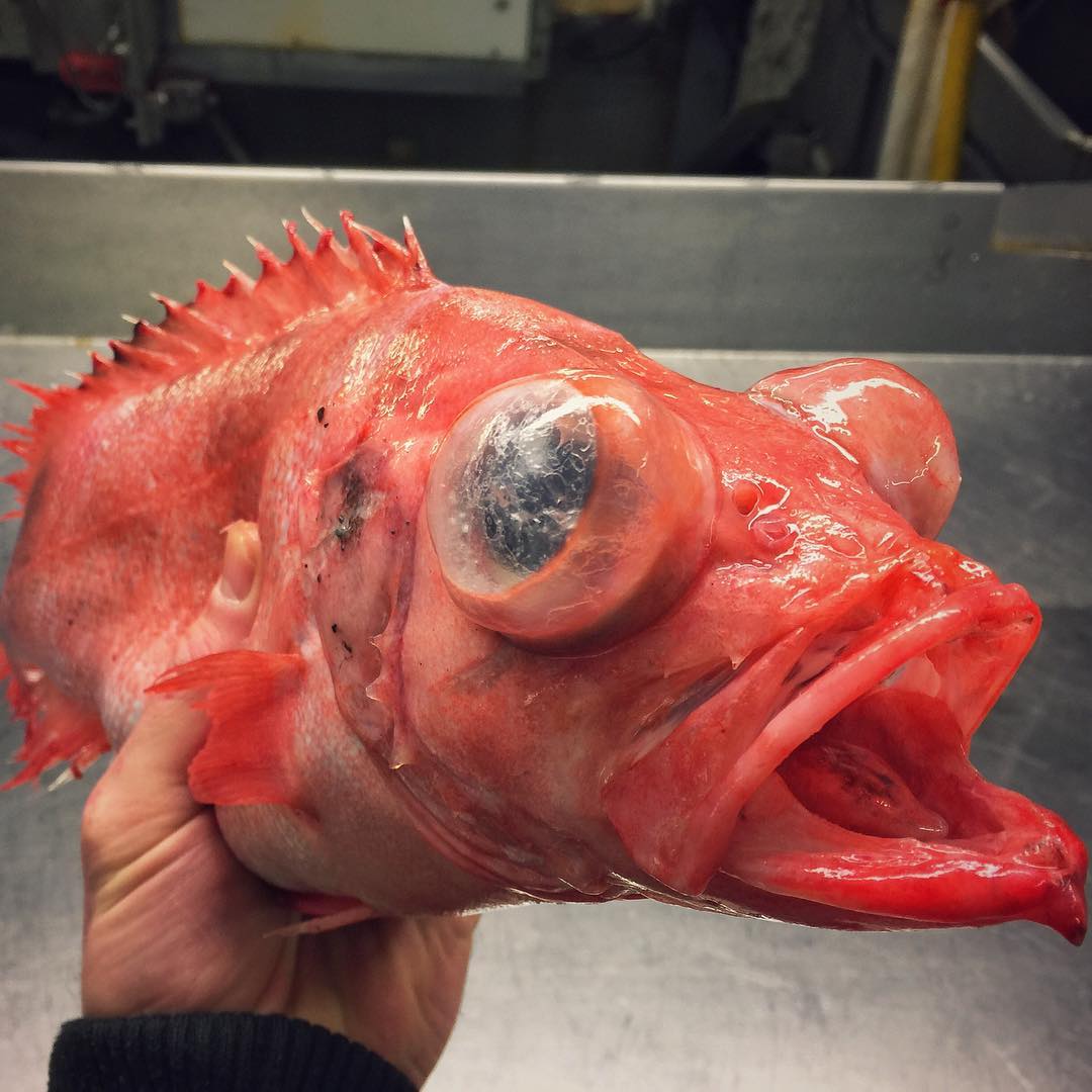 Chênh lệch áp suất dưới đáy biển và trên mặt nước đă làm biến dạng một con cá khi nó được mang lên.