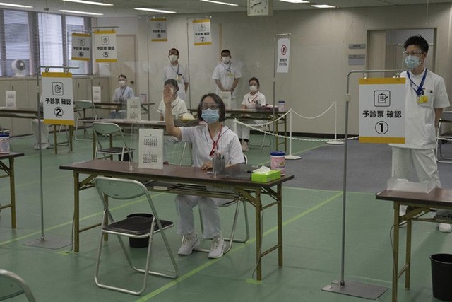 Đội ngũ y tá, bác sĩ tại trung tâm tiêm chủng được huy động từ các bệnh viện quân y trên toàn nước Nhật (Ảnh: AP)