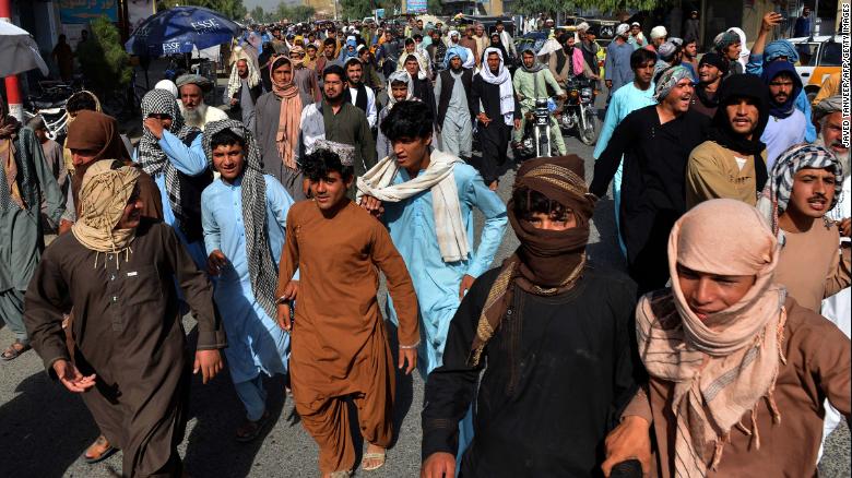 Người biểu t́nh tuần hành trước văn pḥng thống đốc tỉnh ở thành phố, sau khi khoảng 3.500 người sống ở khu dân cư thuộc sở hữu chính phủ, được Taliban cho 3 ngày để thu dọn và rời đi, theo CNN.