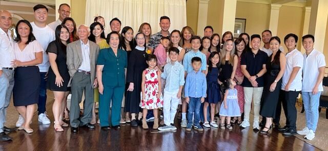 Cụ Nguyễn Văn Long, thứ tư từ bên trái trong hàng ngoài, cùng đại gia đình của cụ.