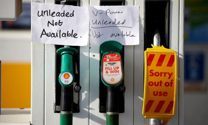 Nhiều tài xế xếp hàng dài trước các trạm xăng dầu trên khắp nước Anh, cảm thấy nóng giận và tuyệt vọng khi hàng ngh́n trạm xăng trưng biển hết hàng. Họ thúc giục chính phủ sử dụng quyền khẩn cấp để ưu tiên phân bổ xăng dầu cho các nhân viên y tế và lao động thiết yếu.