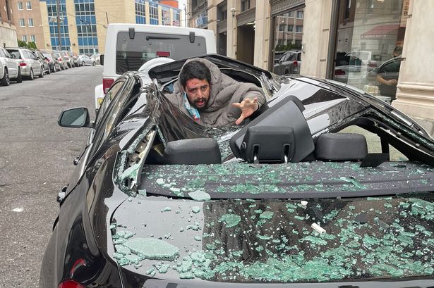 Người dân đi đường hẳn đã có một trải nghiệm khó quên. Khi họ chứng kiến tận mắt một người đàn ông ngã từ trên một tòa nhà cao tầng xuống. Cú rơi mạnh xuống một chiếc xe ô tô đỗ ven đường, khiến nó bị phá hủy hoàn toàn.