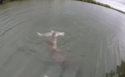 Hai người đàn ông đã câu cá trên một con sông nằm ở Tây Úc. Tuy nhiên khi kéo lên họ đã rất bất ngờ vì sinh vật mắc câu lại là một con... cá mập mắt trắng (Tên khoa học: Carcharhinus limbatus) - một loài cá mập sống có thể sống cả ở môi trường nước lợ!