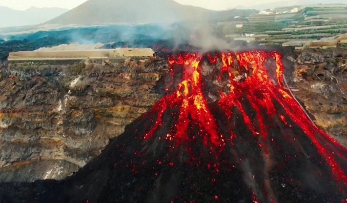 Các khối dung nham nóng chảy khổng lồ có kích thước bằng tòa nhà 3 tầng từ núi lửa Cumbre Vieja lăn xuống sườn đồi trên đảo La Palma của Tây Ban Nha hôm Chủ nhật 10/10 trong khi một loạt địa chấn làm rung chuyển mặt đất.