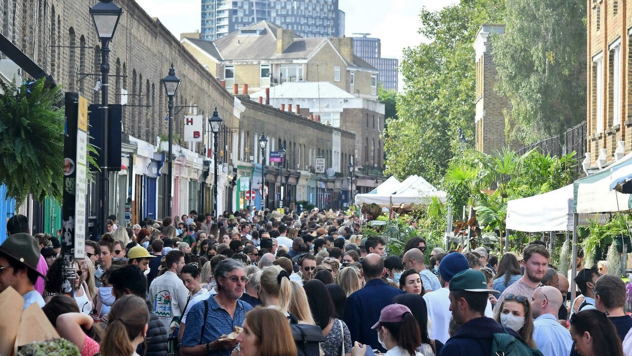 Người dân đi lại đông đúc trên phố, gần Columbia Road, Luân Đôn, Anh Quốc, ngày 12/09/2021. © Justin Tallis, AFP